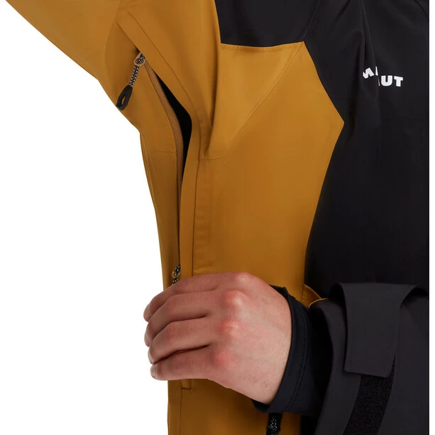 A fully featured ski jacket that is super comfortable thanks to Mammut DRYtechnology. Its elastic material offers freedom of movement and is both waterproof and breathable. The Stoney Hard Shell Jacket is packed with features. The helmet-compatible hood with snow-specific construction is easy to open and detach when needed, even when wearing gloves. A practical wrist pocket lets you store your ski pass and accessories and there’s space for your ski goggles in the generously sized internal pocket. The Stoney offers reliable protection in all weathers. The jacket’s many details are designed for optimal comfort.